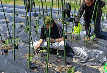 苗の植え付け、接ぎ木苗、わき芽摘み、支柱誘引などについて