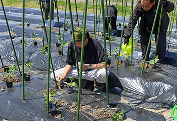 脇芽とり、誘引、摘芯、摘果、追肥の仕方など、実習