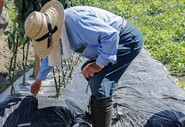 ご夫婦が力を合わせて畑の世話を日々の工夫をして野菜を育てています。