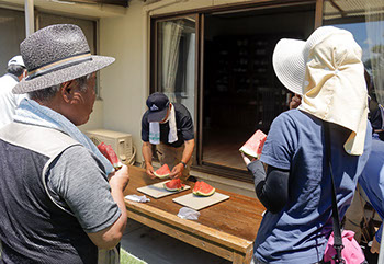 ご夫婦が大切に育てた よく冷えた大玉スイカ羅皇(ラオウ)を全員でいただきました。