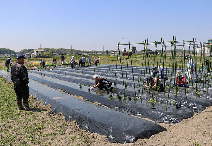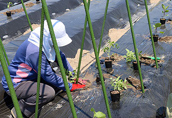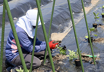 苗の植え付け、接ぎ木苗、わき芽摘み、支柱誘引などについて