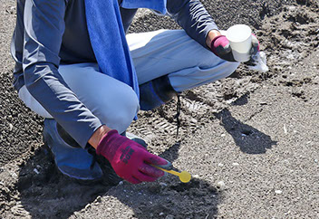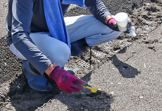 植穴に農薬を散布し、ゆっくりたっぷり灌水します。(スタークル粒剤)